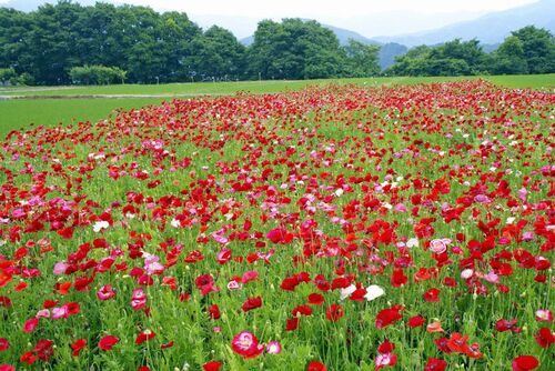 伊那路は農業の国ですが、減反や後継者がいなくなり、 休耕田や畑などにはお花を植えて楽しむ方が増えてます。 これが結構話題になりカメラマンが押し寄せて(^o^)「ポピー」 「シャクヤク」 南アルプスの山並みが霞んでます。春霞(>_ 「フクロナデシコ」 花…